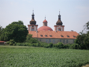 Ve třetí ose z V strany vyniká vstupní otvor sklenutý půlkruhovým obloukem a rámovaný edikulou. Pilastry nesou kladí s trojúhelným frontonem. Východní průčelí V křídla je o jedenácti osách. Západní průčelí V křídla rozděluje přilehlá sakristie kostela sv. Anny na dvě části s dominujícími hranolovými věžemi nad okapní římsou. Nároží věží lemují sdružené lisény. Nad profilovanou korunní římsou věží, uprostřed vytaženou do půlkruhového oblouku, se zvedá nízká jehlancovitá střecha s odstupněnou cibulovou bání krytou šindelem a osmibokou oplechovanou lucernou s makovicí a ozdobným dvouramenným křížkem. Zvalbené střechy kláštera kryje pálená krytina (bobrovky a esovky).
