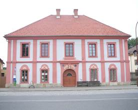 plechem. Na Z straně přiléhají k JV křídlu ještě dva další drobné přízemní přístavky s pultovými stříškami krytými plechem. Fasády obou křídel jsou členěny soklem, patrovou a korunní profil. římsou a lisénami. Přízemní okna hlavního průčelí osazena v líci jsou dvoukřídlá o osmi okenních tabulkách (pozůst. původního členění). Okenní přízemní otvory jsou rámovány šambránami s ušima a se štukovými suprafenestrami. Portál s půlkruhově završeným vjezdem je zdoben žlábkovaným esovitě prohnutým klenákem, po jehož stranách vystupují štukové větvičky obalené dubovými listy. Předmětem ochrany je dům čp. 111 - stavba a pozemek parc.č. 463