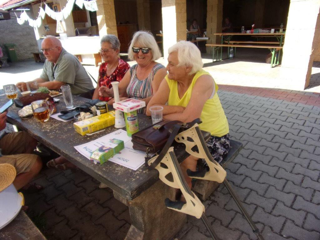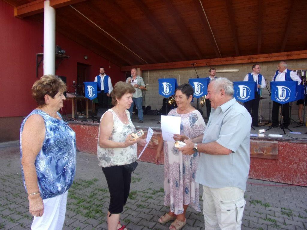 V sobotu 14.8.2021 jsme se sešli v Zámecké restauraci v Nových Dvorech na Sousedském posezení, které vonělo štrúdlem a dalšími dobrotami z trouby. Byly zde také vystaveny fotografie umění našich členek v pěstování jiřinek. Do soutěže o nejlepší novodvorský štrúdl anebo něco lepšího z trouby se zapojilo 15 soutěžících. Porota, která hodnotila tyto dobroty, byla ryze mužská. Že to chlapi neměli vůbec lehké, vyplývalo z rozmanitosti dobrot. Byl tam štrúdl, šátečky, rolády, koláče, řezy a to v různém provedení. Porota vyhodnotila jako nejlepší štrúdl od L.Hubalové a šátečky od I.Hanzlíkové. Na 2. až 3. místě se umístily E.Wassebauerová s věnečky a A.Bílková s roládou. Do soutěže v pěstování jiřinek se zapojilo 20 členek, z nichž jako nejlepší pěstitelky byly vyhodnoceny J.Vojtíšková, L.Hubalová a K.Rajdlová. Tuto akci jsme mohli uskutečnit díky sponzorům; zde patří poděkování Řeznictví - uzenářství U Pozdníků, Řeznictví M. Říha, Mateřské škole v Nových Dvorech, VAPASKU s.r.o. Nové Dvory, Potravinám Nguen Dinh Hungen, Fyzioterapii Veroniky Sýsové, Vodouchovému světu Jiřího Rajdla, manželům Prchalovým, manželům Duškovým a řadě našich členů, kteří do tomboly také přispěli. Tuto akci jsme mohli uskutečnit díky finančnímu příspěvku Městyse Nové Dvory a MAS Lípa pro venkov Zbraslavice. Přestože teploměr ukazoval tropickou teplotu, bylo to pro účastníky příjemně strávené sobotní odpoledne. K tomu nám přispěla Českomoravská dechová hudba z Čáslavi Věnovanka, pod vedením kapelníka Václava Musílka. Krédo této kapely je MUZIKU DĚLÁME S ÚCTOU A LÁSKOU. A to nám tito mladí muzikanti dechové hudby dokázali, že to není jenom heslo. Jiří Rajdl předseda