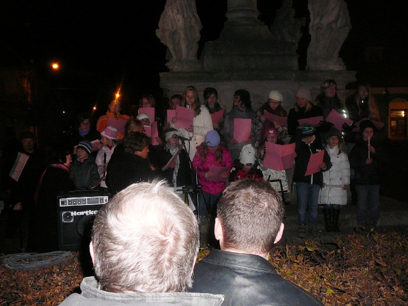 Důkazem, že tradice zahajování adventu je v naší obci silná, bylo plné náměstí lidí, kteří se oddávali sváteční náladě. Kdo chtěl, mohl se zahřát "svařákem".To ale nebylo všechno. Děti z MŠ Mašinka měly připravené vystoupení a také znaly kouzelné zaklínadlo, které rozzářilo celý strom.Písničky a říkanky v podání dětí jsou diváky vždy vděčně přijímány. Milým překvapením bylo vystoupení pěveckého kroužku žáků ze ZŠ Nové Dvory "Sluníčka ze zámku", v jejichž podání zazněly koledy a vánoční písně. Sponzorem této akce byla Zahradní restaurace Nové Dvory.