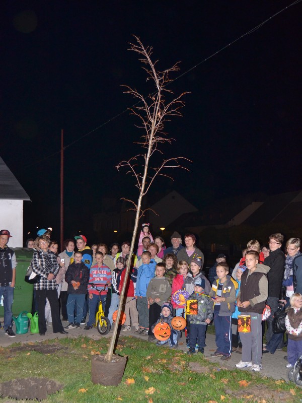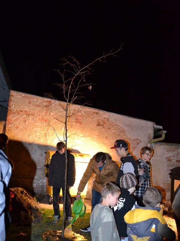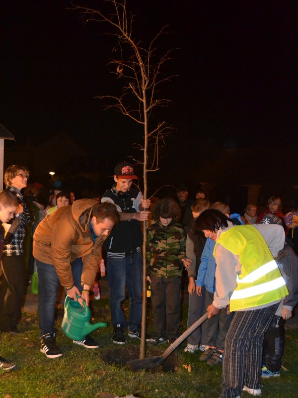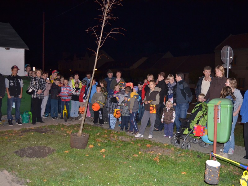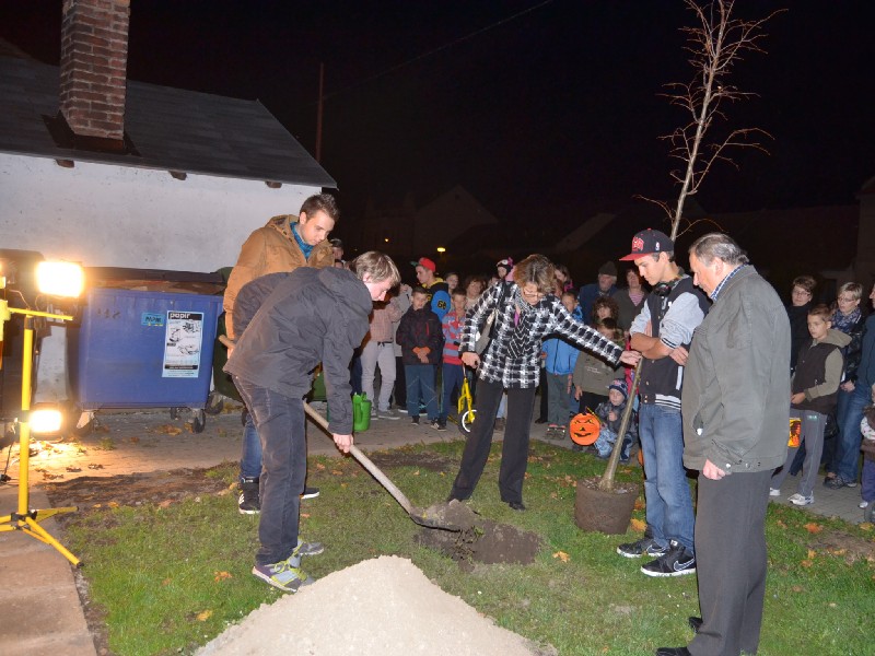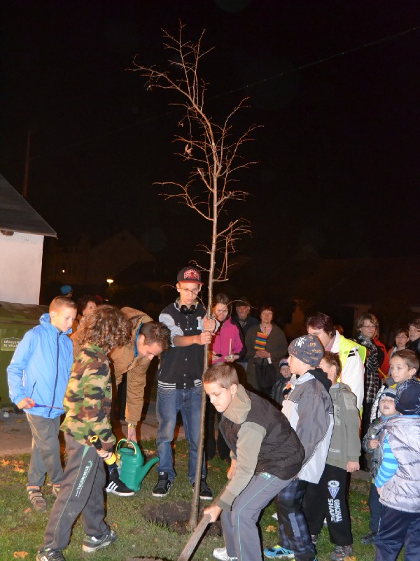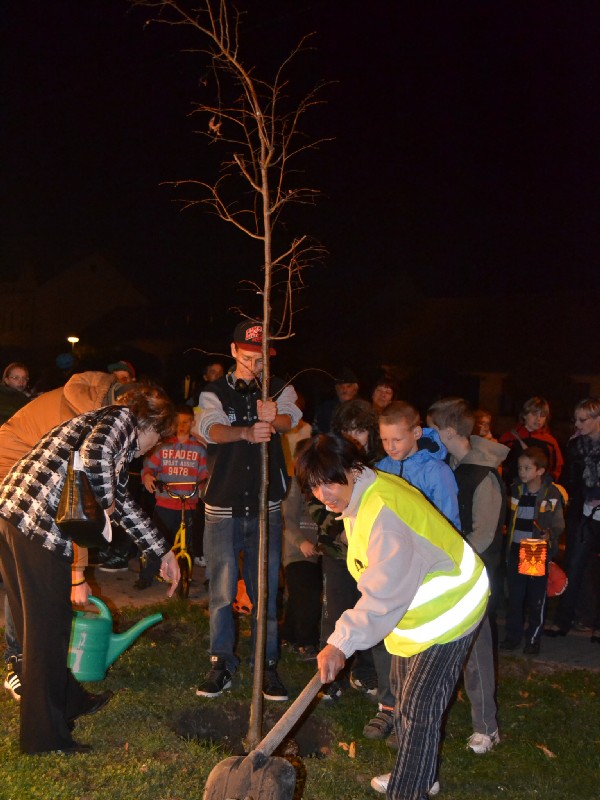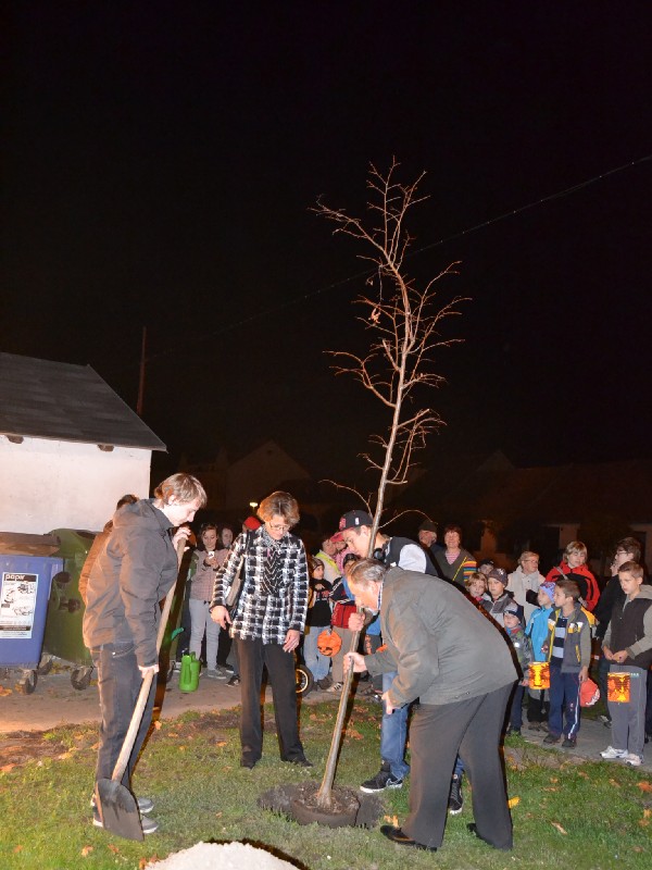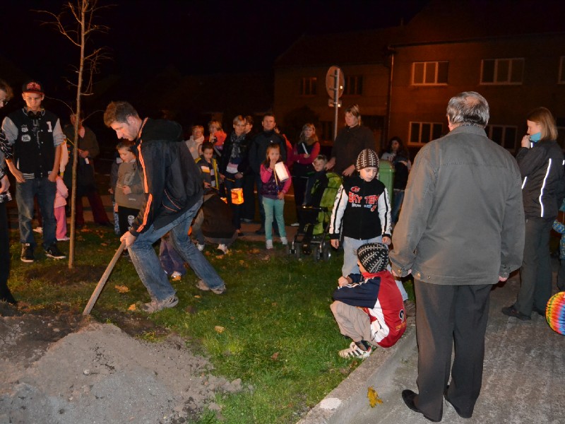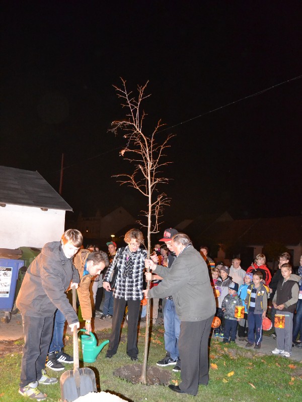 Sešli jsme se před obecním úřadem a v doprovodu dětí se svítícími lampiony jsme prošli ulicemi naší obce a nakonec se zastavili u bývalé "staré váhy". Právě zde jsme společně zasadili lípu - symbol naší republiky. Hlavně děti chtěly přispět svou vhozenou lopatkou hlíny ke kořenům stromu a měly ohromnou radost ze zasazeného mladého stromku. Starosta obce Jiří Rajdl několika slovy vyzdvihl význam 28. října i pro dnešní dobu. Uvedl, že když došlo k rozdělení Československa, je tento den pro naši Českou republiku stále významným svátkem, který si každoročně připomínáme.