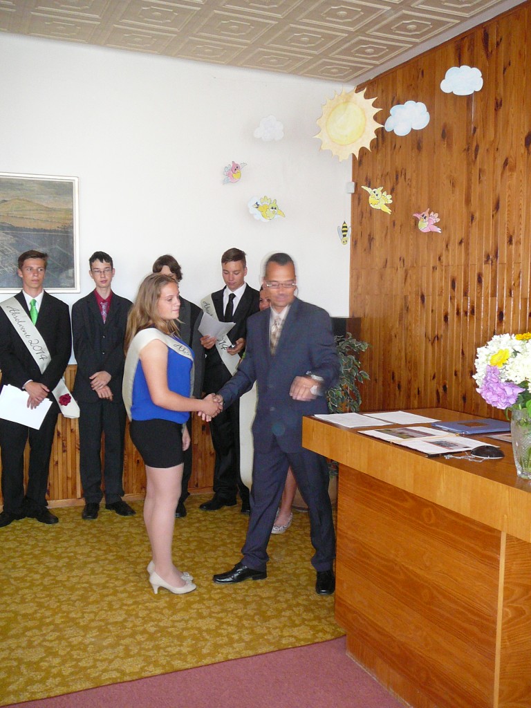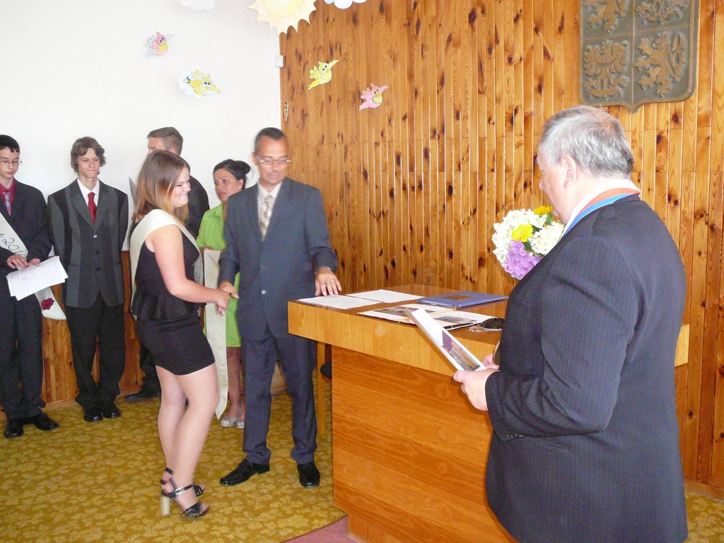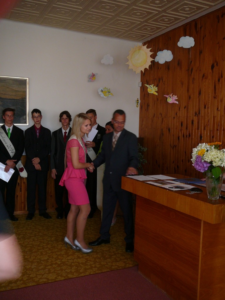 V pátek 27.06.2014 se v obřadní síni úřadu městyse uskutečnilo slavnostní předání vysvědčení žákům 9. třídy ZŠ a MŠ Nové Dvory. Starosta městyse Nové Dvory Jiří Rajdl poděkoval žákům za jejich reprezentaci ve sportovních disciplínách, olympiádách i aktivní účasti v pěveckém sboru "Sluníčka ze zámku". Popřál jim mnoho úspěchů v dalším studiu. Třídní učitel Mgr. Václav Syrový předal žákům šerpu a vysvědčení. Od městyse Nové Dvory žáci obdrželi sadu psacích potřeb a pamětní list. Se žáky se v závěrečném vystoupení rozloučil ředitel ZŠ a MŠ Nové Dvory Mgr. Bc. Jan Ingr.